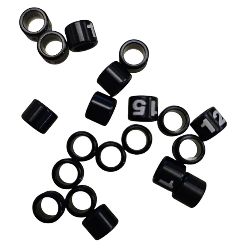 As Anilhas de Alumínio 4.5mm Numeradas da Anilhas Capri são ideais para identificação de aves, galinhas e pequenos animais em criações, exposições ou monitoramento. Produzidas em alumínio resistente e leve, possuem numeração gravada de 1 a 20, garantindo fácil leitura e organização do controle dos animais. Sua superfície lisa e acabamento em Preto proporcionam durabilidade e conforto, sem prejudicar o bem-estar do animal.