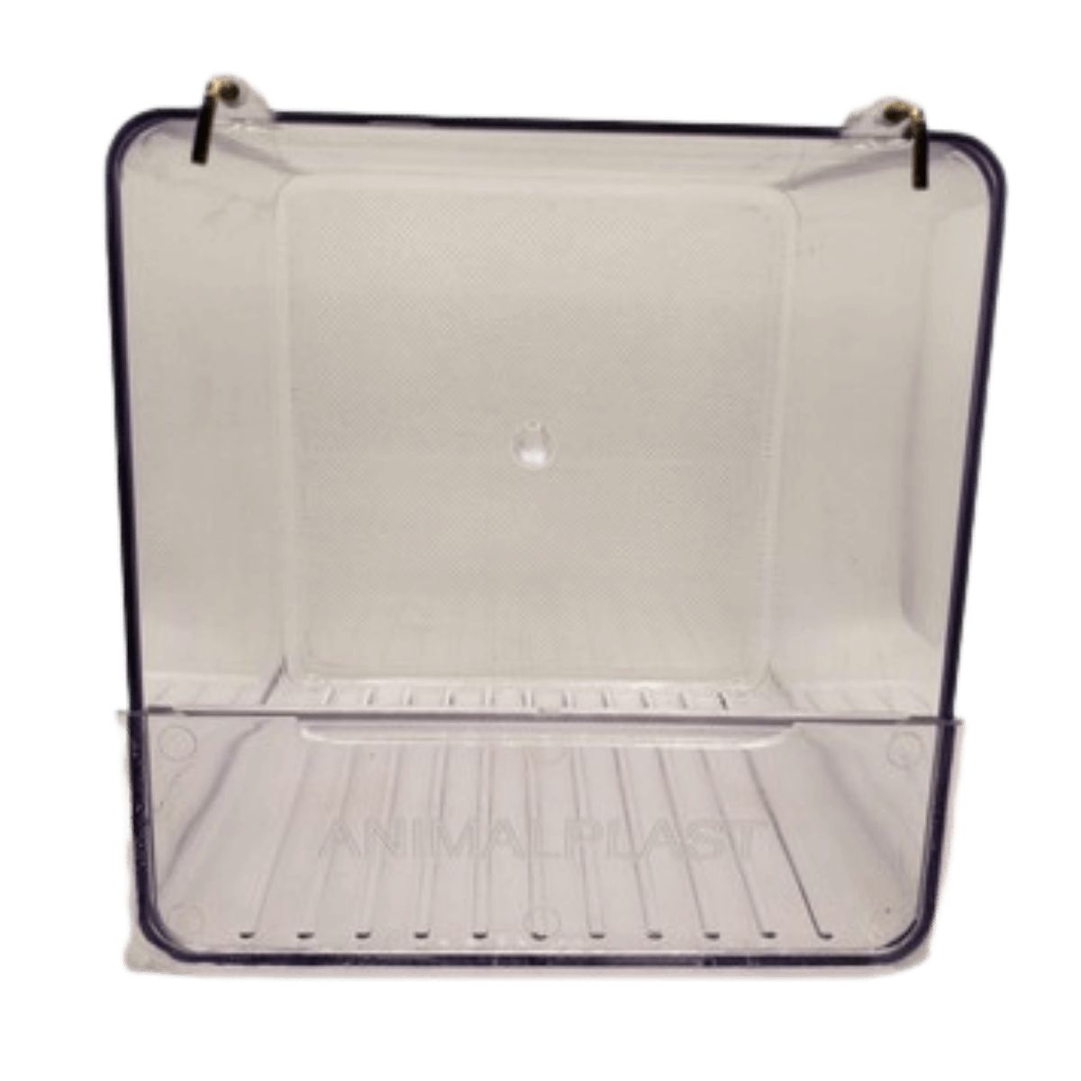 Banheira externa italiana de acrílico azul, ideal para estações de calor intenso ou para uso na criação de aves. Permite que os pássaros se banhem sem molhar o interior da gaiola ou os alimentos próximos à banheira, proporcionando um ambiente limpo e saudável.