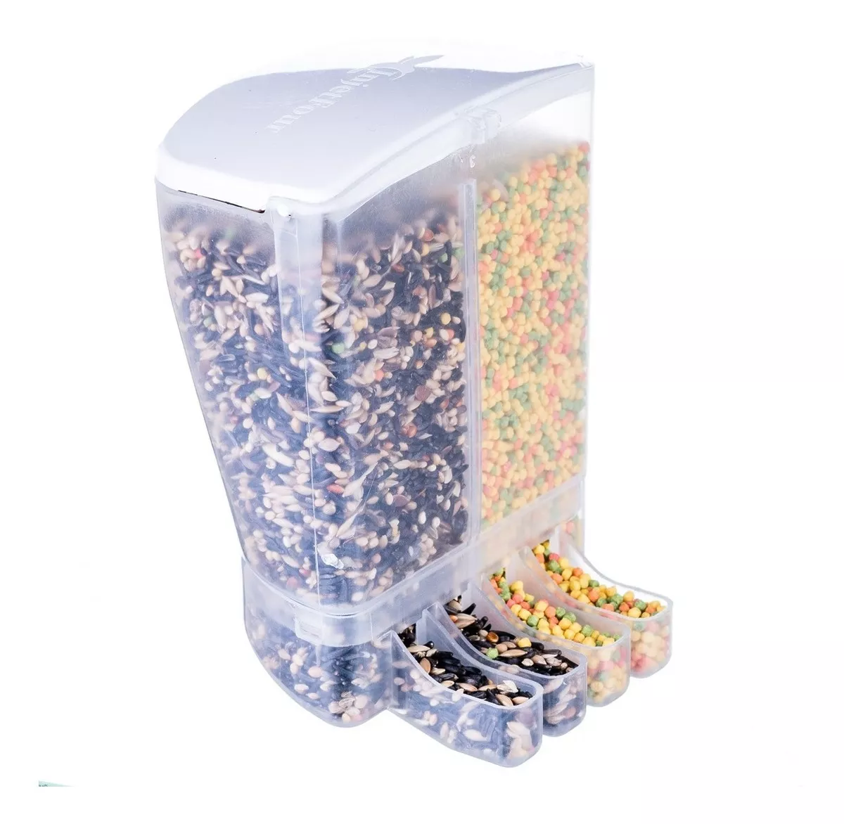 Compre Agora - Comedouro Contínuo Dispenser de Sementes com Divisória 4 Bicos | Injetfour - Comercial Penna Firme - Produtos para Aves - O Melhor do Brasil