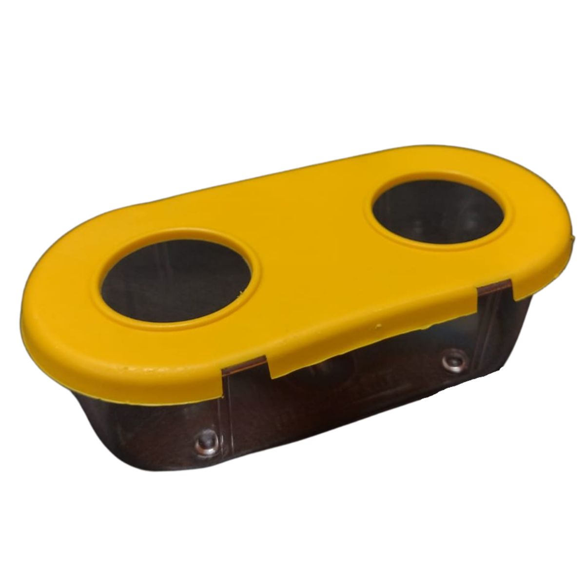 Possuí os furos na tampa para que durante a alimentação da ave não haja tanto desperdício