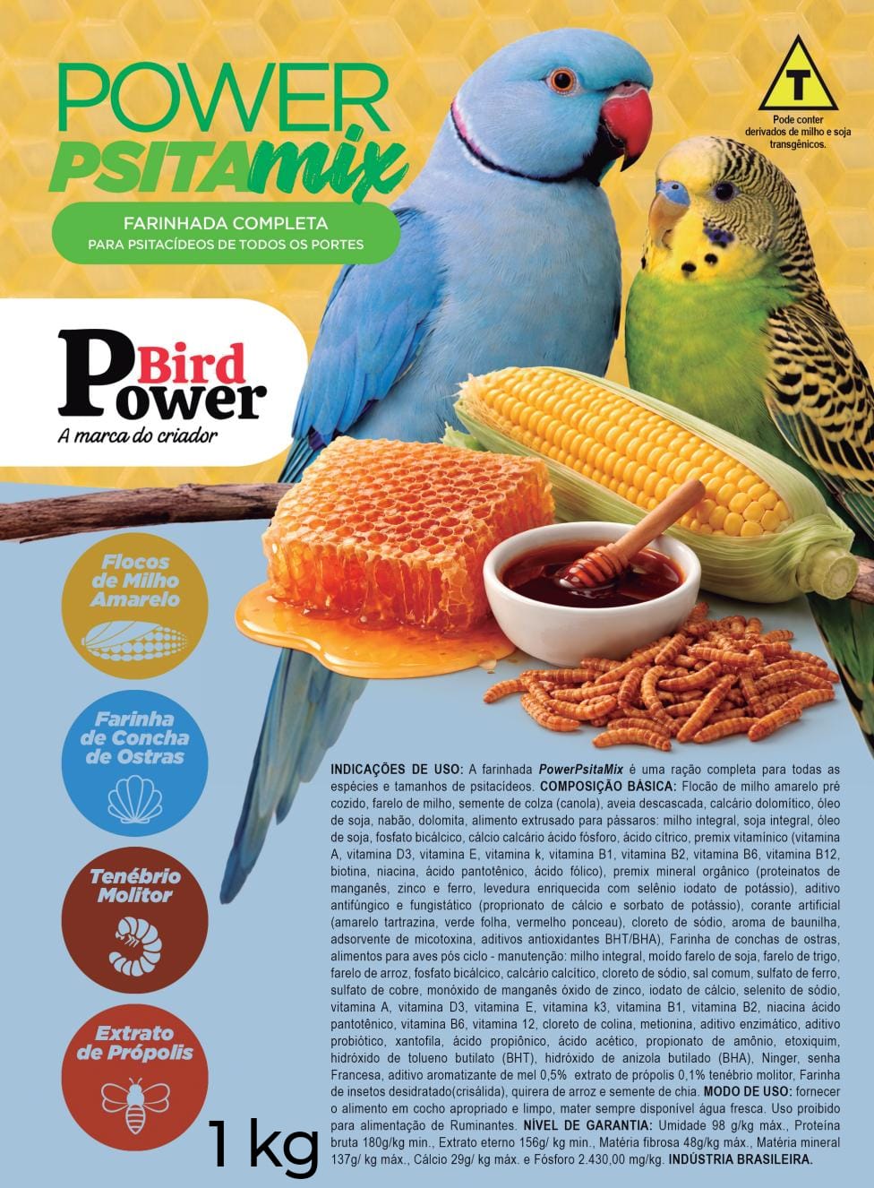 A Farinhada Power Psita Mix é uma mistura de alimentos processados para psitacídeos, que inclui Tenébrio molitor (larva de inseto), própolis e conchas de ostras. Essa combinação oferece uma dieta equilibrada e rica em nutrientes para suas aves.