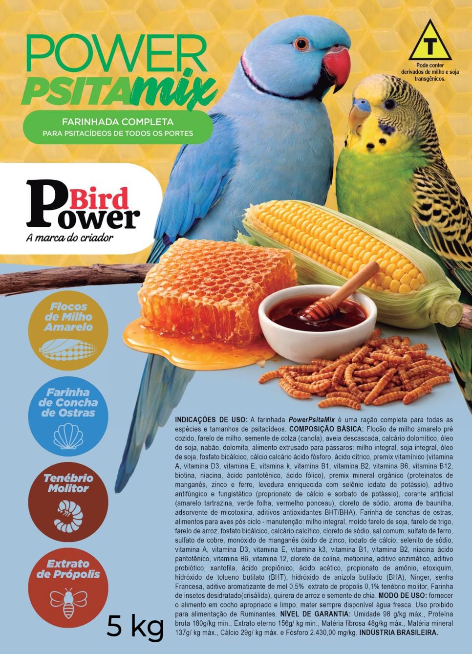 A Farinhada Power Psita Mix é uma mistura de alimentos processados para psitacídeos, que inclui Tenébrio molitor (larva de inseto), própolis e conchas de ostras. Essa combinação oferece uma dieta equilibrada e rica em nutrientes para suas aves.